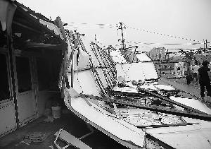 大风卷起的简易房四分五裂