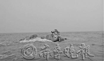 12日早上6时20分,大辛家边防派出所民警接到报警,在海阳大辛家海域被称为“鹁鸽岚”的地方,有3名游客被困在礁石上,且海水在不断上涨,游客无法返回到岸边,请求救助。接警后,边防派出所立刻派出民警赶往事发海域。由于事发海域离岸有5海里且暗礁密布,大型船只不敢贸然靠近,边防民警只好借用渔民的小型渔船,在熟悉情况的老渔民的带领下,摸索前往。