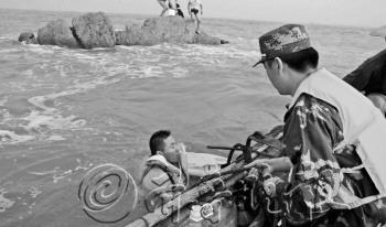来自河南的秦先生回想起8月4日发生的一幕还有些后怕,第一次见到大海,秦先生被大海壮观的景色吸引,爬上了离岸边比较远的一块礁石,想与大海更近距离地接触,没想到正值涨潮时间,秦先生很快就被海水包围了。秦先生说:“第一次来到海滨城市,感觉大海挺好的,我就上了礁石,没想到潮水涨得这么快,过一会儿看到水涨上来了,我下不来,我就害怕了。”