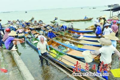 昨日,湛江市的渔民赶在“尤特”来前抓紧销售捕获的海鲜。记者 王辉 摄