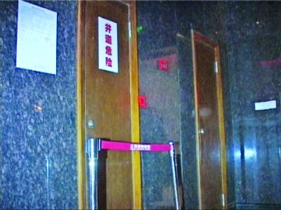 昨天上午,扬子晚报记者来到中泰国际广场,记者看见事发地点就在该广场5栋一层的大厅内。该大厅一共有4部电梯,张女士坠下的小门就紧挨着电梯。电梯旁共有两个小门,一个门上标明“井道危险”,并用警示线围起,另一个门上什么也没有。记者发现,没有标记的门可以用手打开,有标记的门已经锁死,打不开。据目击者透露,事情就发生在标有“井道危险”的这扇门,事发当时根本没有这个标记,是事发后才贴上去的。