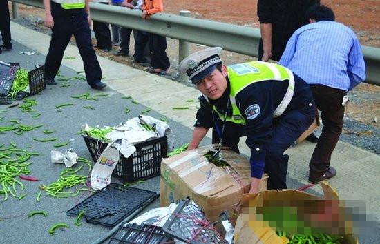 李兵:那是在处理一起交通事故后,帮着搬运辣椒。我找不到生活照,只有这种,这才是我的工作常态嘛。