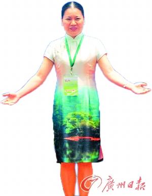 肇庆副市长陈宣群特意穿了一条印有鼎湖山风景的旗袍来推荐旅游。杨耀烨 摄