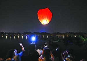 七夕夜北京有人在后海放孔明灯 仨挂树上险酿火灾