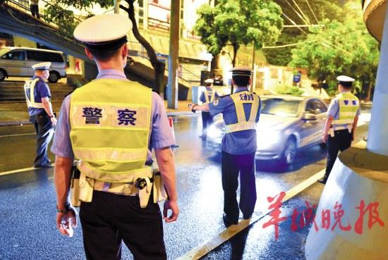 广州交警夜间出动打击酒驾 黄巍俊 摄(资料图)