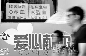 13日,济南泉城广场上的献血屋窗户上竖着血液告急的牌子记者 王媛 实习生 宛蓉 摄