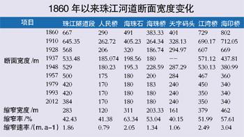 珠江百年缩窄200米