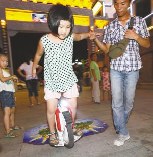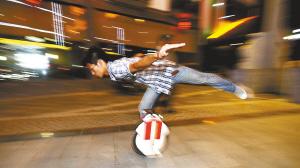 8月17日晚,在南昌市湾里区街头,几位年轻人骑着思维车秀车技,有如脚踩风火轮,让人大开眼界。据介绍,思维车是一种电力驱动、具有自我平衡能力的代步工具,正日益受到都市时尚年轻人的喜爱和追捧。(记者 梁振堂 摄)
