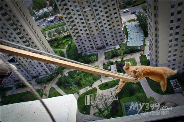 流浪猫23楼窗外待10天 居民上演“惊险营救”(图)