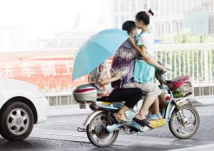 三口之家骑一辆电动车 马路竟成杂技场(图)