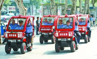 社区志愿者驾迷你消防车24小时不间断巡逻(图)