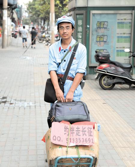 中年男辞职走长征路 手拉行李箱腰挂大喇叭(图)