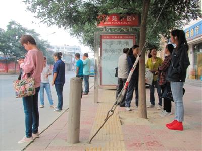 八月二十日早晨,人们在固原市区西关北街宁苑小区的公交站点等待公交车。竖立在人行道上的公交站牌挡住了盲道,盲道的另一边被电线杆的钢丝拉线堵住了,拉线的旁边还竖立着一截水泥杆。左右夹击、障碍重重使盲道失去了作用。城市建设理应让大家都享受到便捷、周到的服务,不要让“无障碍”变成“有障碍”。(拍客 周复生)