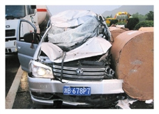 大货车高速路打滑 30吨卷纸砸中高速上4辆车(图)