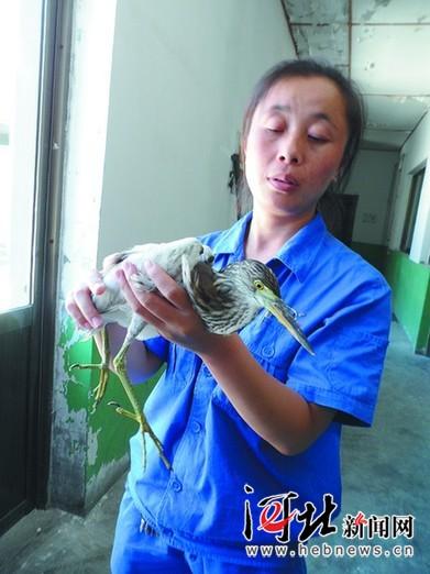 石家庄市民捡到受伤池鹭 警民帮忙找归宿(图)
