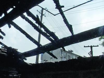 书架被烧掉了。屋顶被烧穿了。梅建明 摄