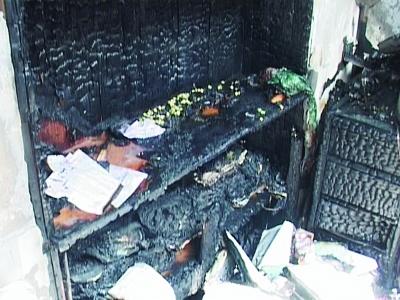 据失火住户家的女主人介绍,她中午出去办点事,刚出门不长时间,就接到邻居电话说家里失火了,赶紧往回赶。回来发现,失火的地方正好有一个书架,上面放了很多书,因为她是做小吃的,在书架旁边又堆了很多食用油。失火后,将书烧着,又将旁边的油脂烧了起来,一时之间,火烧起来又快又大,令她感动的是,不少邻居赶来帮忙扑火。好在消防和民警到得快,在众人的帮助下,很快将大火灭掉。但此时,房里的书架被烧掉,床及桌椅被烧毁,而房顶也已被烧通。至于失火的原因,初步怀疑可能是线路老化所致。(记者 梅建明)