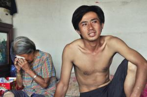 李海鹰从沈阳回到老家寻找失踪的父母,4天3夜没怎么睡觉,一旁的奶奶心疼地落下了眼泪-华商晨报华商响网记者 张诗尧 摄