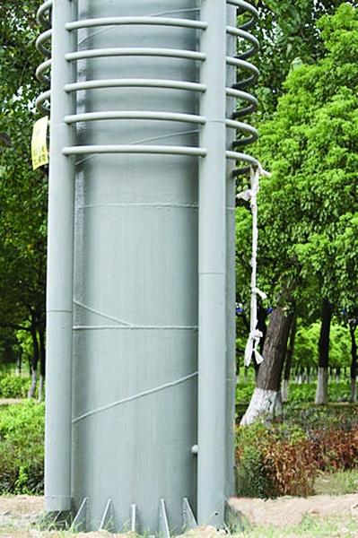 记者注意到,爬上高炮可不是件容易的事,由于专业工人登上高炮安装广告是爬固定扶梯登上去的,可最后一阶扶梯距离地面有两米多高,正常人够不到。该男子是用一个绳子拴在最后一阶扶梯上,拽着绳子爬上梯子,然后顺着梯子往上爬。