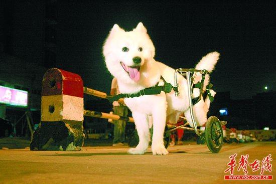 长沙小区现“狗坚强” 下半身无知觉拖婴儿车跑