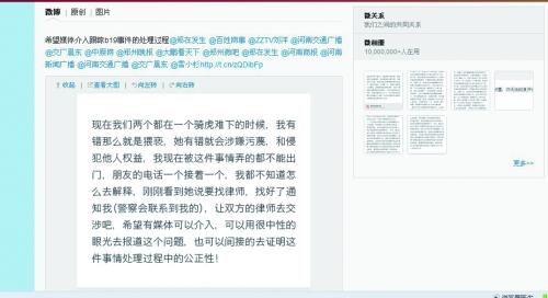 @快樂-Ultra:在舆论上你确实赢了,作为一个旁观者,我估计走法律程序你要吃亏。首先你把人家的照片都发到网上了,已经侵犯了人家的权益,如果你没有直接的人证物证,只有靠自己的证词是难以来证明此事的!走法律是对的,不过你这种情况就两个人协商吧。 (河南商报 记者程国昌实习生孙梦飞 )