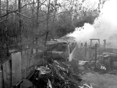 烧纸酿大火 废品站“房车”成骨架2万现金被烧
