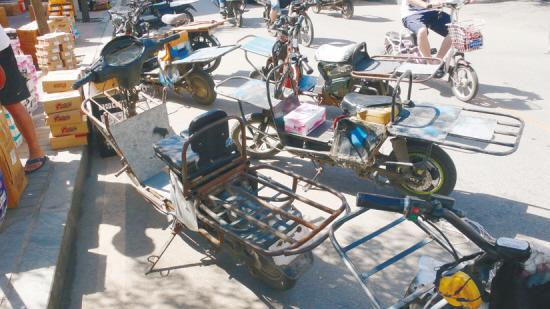 仔细观察会发现,改装车构造十分简单,只剩下一副电动车的“骨架”在支撑,难以承载过重的货物。更有甚者,车主们不顾交通信号的指示,任意横穿马路,影响了道路交通安全。