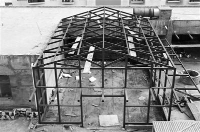 天台上的房屋已经搭建出框架。记者 祁晓军 摄