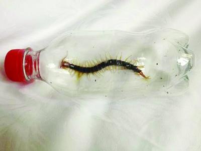 冯先生被这只蜈蚣咬了。曹卢杰 摄