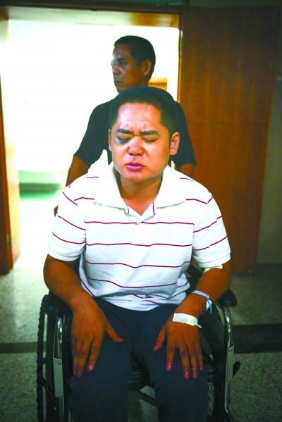 被打伤的洪先生正在医院治疗。 见习记者孔轩 摄