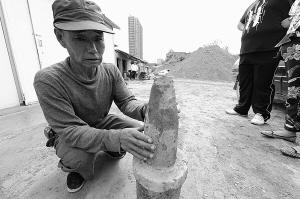 施工过程中工人挖出“铁疙瘩”