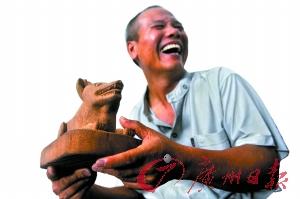 这位保安大叔原是为了哄孙子才做起木雕,谁知一发不可收拾。他的得意之作,是看《广州日报》雕刻起圆明园“十二兽首”作品。