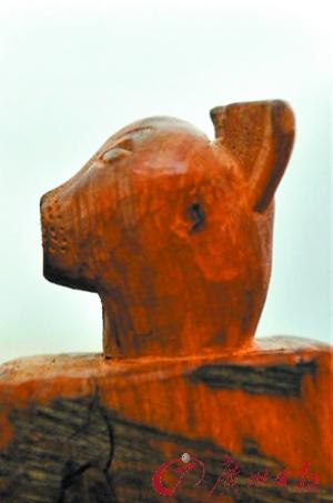 满叔给孙子雕刻的木制狗。
