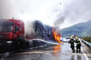 大货车自燃 一车感冒药燃烧损失超百万(图)
