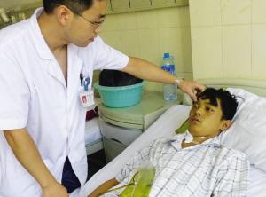 这名小伙子叫何勇,24岁,系桐梓县人。“平时就是喜欢吃炒田螺,特别是最近几个月,天天晚上都要吃一盘。”何勇说。两个月前,他突感腹痛,但也没太在意,直到一天工友吃惊地看着何勇,说发现他的眼白、皮肤呈现淡淡的绿色,何勇这才仔细照了照镜子,“这一照不要紧,自己把自己吓着了,就像电影里的绿巨人。”何勇说。