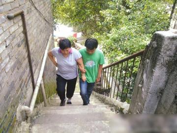 到家还有26步的石梯要走,可是虚弱的胡成芬却很难使上劲,相对刚刚做完透析的母亲,余朝阳的精神还不错。为了能与母亲相互照顾,母子俩一直是交叉做透析。