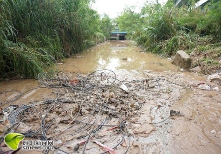 据周边居民告诉记者,“万分紧急,万分紧急,发大水了,请尽快抢救财物,撤离到安全地带”,昨日清晨5时左右,龙华新区民治街道沙吓社区的一侧紧急广播,将丁先生从梦中惊醒。