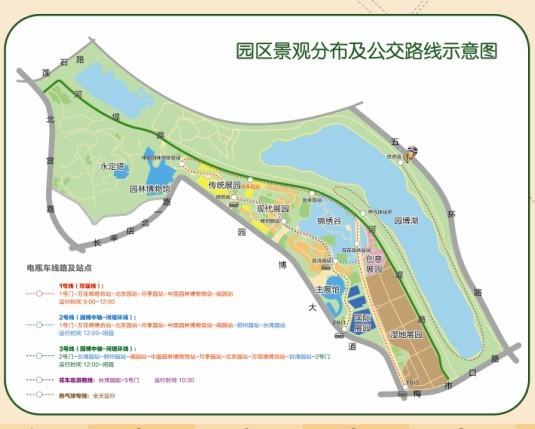 交通信息:第九届中国(北京)国际园林博览会地址为北京市丰台区射击场路15号,可在乘坐地铁14号线园博园站下车,也可乘坐北京西站专线、北京南站专线 、慈寿寺公交站专线、西局专线抵达园区,票价10元(西局专线票价5元)。自驾车游客可以在北宫路立交向南抵达园区,也可以在西六环北宫出口抵达园区。