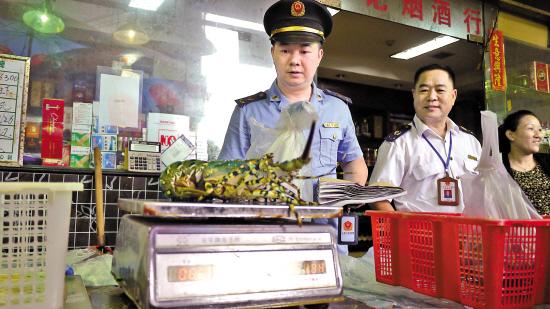 广东荔湾突击检查水产市场 螃蟹不准绑水草过秤