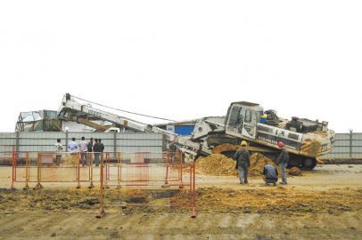 昨日上午10点,记者赶到现场时,该路段实行了交通管制。从高处看去,倒地的旋挖钻机就像一条大蜈蚣瘫在泥地里。约15米长的桅杆跨越工地围墙,倒在马路上。一辆白色小货车车厢被砸成“U”形;一间平房被击中,屋顶塌陷。几十名工人在工地里抢险。