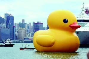 有自己的精神,而不仅仅为了迎合市场。霍夫曼的创作灵感来源于一个长达15年的故事。1992年,装满了不起眼橡皮鸭的货轮从中国出发准备穿越太平洋抵达美国,但途中遇到强风暴,一个有2.9万只浴盆玩具的货柜坠入大海并破裂,一支庞大的“鸭子舰队”,从此随波逐流。在之后的15年里,小黄鸭们用微弱的浮力在大海里漂荡,历经万难,最终登陆英国、美国。在很多人心里,黄鸭子们是坚忍和希望的象征。
