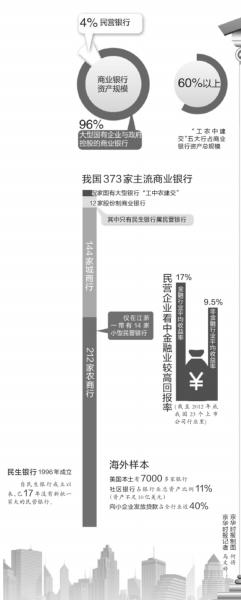 统计显示,当前我国373家主流商业银行96%都是中央政府、地方政府、大型国有企业和地方政府平台公司控股。在12家股份制商业银行中,只有民生银行属民营银行。随着经济的发展,这种国有控制模式在一定程度上已成为经济发展的阻力,比如,它很难为中小企业提供公平的金融服务。
