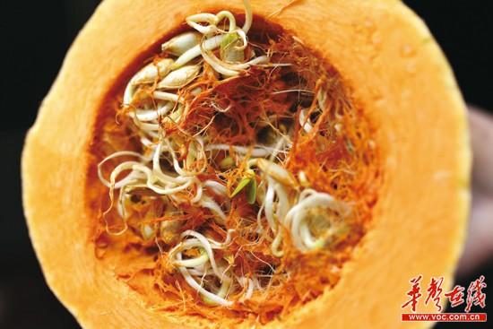 南瓜肚内长满“豆芽苗” 专家:仍可食用(图)