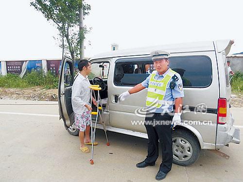 男子拄拐杖开车送孩子上学还超载 称为赚生活费