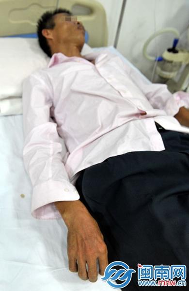 48岁的翁国秦大叔,是泉州市区丰海路滨江公园管理中心的一名保安,昨日下午4点半左右,他正在拔中心附近一块空地上的杂草。两只蚂蚁,爬到他右手背后,传来一阵刺痛。10分钟后,先是双眼失明,然后双手僵硬,浑身冒冷汗……