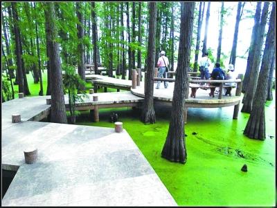 昨天,记者向东湖落雁景区了解情况。一位姓艾的工作人员介绍,这片池杉林是落雁景区的特色景观,湿地里的水很浅,旱期只有20厘米深,汛期也没不过膝盖。当初为了营造亲近自然的氛围,景区放弃安装护栏,尚未接到过游客的相关投诉。对于田先生的建议,他们会认真考虑,并尽快在栈桥上设置警示牌进行提醒。-本报记者万凌