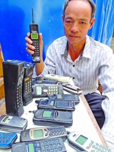 近日,在凤凰西街上,南京市民陈清祖向记者展示了他收藏的大砖头手机,他收藏了各种早期的手机多达70多部,此外还有其它手机达上百部。来自广东的陈清祖,此前一直在南京从事户外广告、电器修理等工作,因为职业的便利,他爱上了收藏这些大砖头手机,如今这些不被人重视的砖头手机,开始升值了,这也让陈清祖非常高兴。