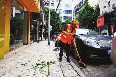 环卫工曾武旭已回到岗位。