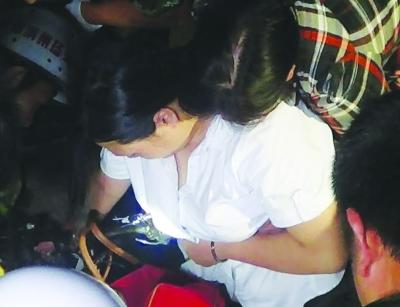 在这个过程中,120医务人员不时检查伤情,帮她擦掉脸上的汗水。为防止对女子造成伤害,现场救援人员严禁移动电动车,找准部位后,小心翼翼地将塑钢把手剪开个小口子。经过约20分钟的努力,这根把手被成功剪断。随着一声清脆的响声,插入女子身体里的刹车把手脱离了电动车。消防队员立即将这名女子放到担架上,抬上救护车,送医院治疗。