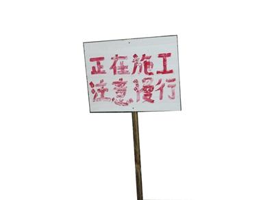 车库入口处,只有一个“正在施工注意慢行”的牌子。记者 王辉 摄